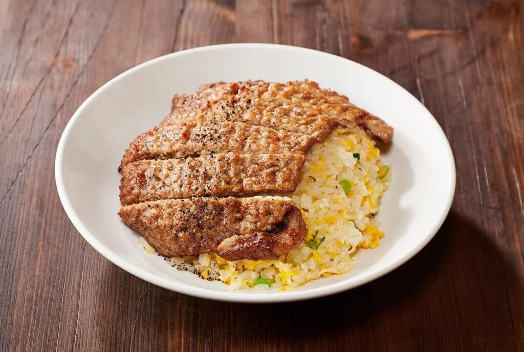大きな存在感を放つ豚肉の骨なしスペアリブを揚げてから、香辛料のタレで漬け込んだパイクーがチャーハンに豪快にON。黄金色のチャーハンと、食欲をそそる味と香りを楽しめます。