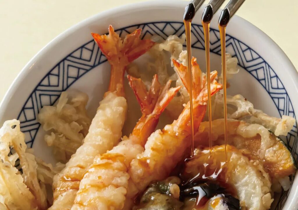 「てんどん天舞」の天丼には「醤油だれ」と「赤味噌だれ」の2種類を用意。醤油だれは出汁を効かせた深みのある味わいで、素材の味を引き立てながら、すっきりと上品な後味を楽しめます。