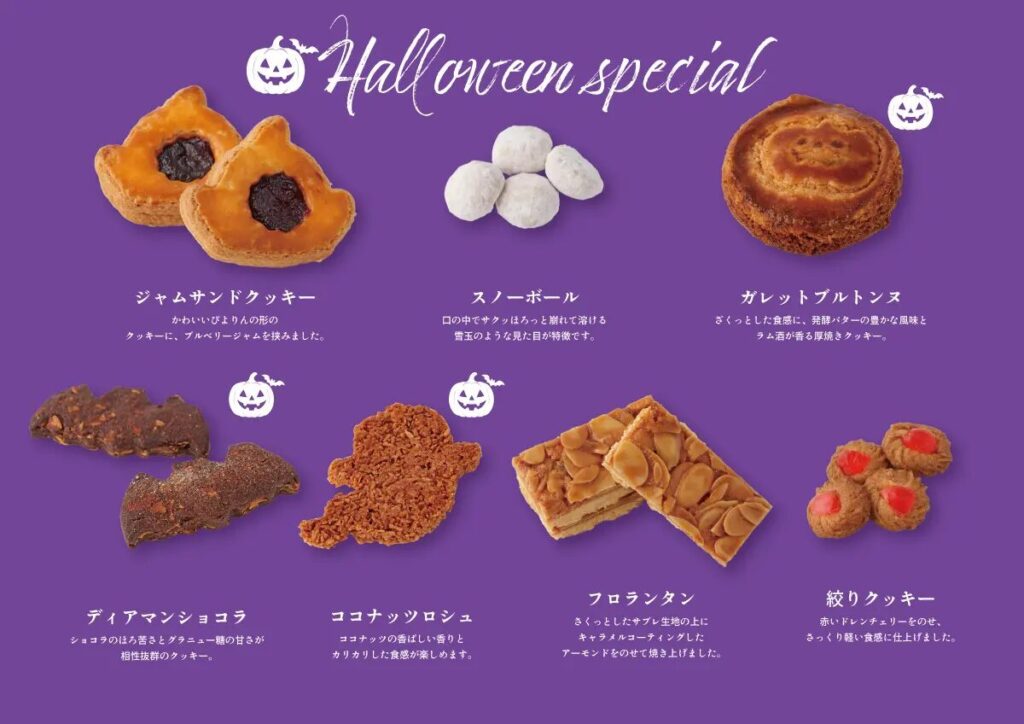 ぴよりんアトリエでひとつひとつ丁寧に手作りした7種類のクッキーが詰め合わせになった「ひよりの手作りクッキー缶」。ハロウィンバージョンでは、発酵バターとラム酒が香るざくっとした「ガレットブルトンヌ」、ほろ苦い味わいの「ディアマンショコラ」をはじめ、香ばしい「ココナッツロシェ」の3種類がハロウィン仕様の限定デザインとなって登場します。
