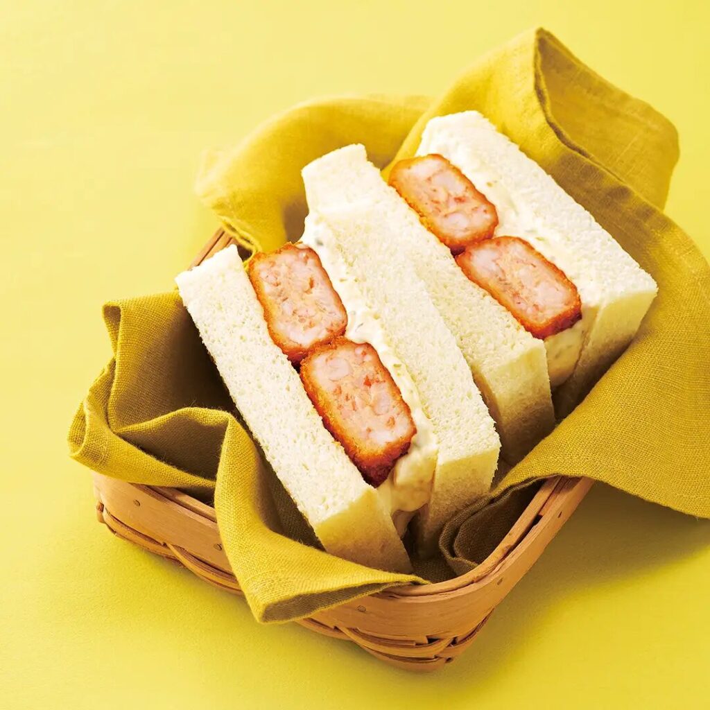 熟成卵黄の濃厚なコクと旨み、ゴロゴロ卵とシャキシャキ玉ねぎが海老カツにベストマッチ!海老カツサンド[味噌] 594円(税込)