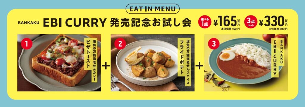 今回「お試し会」では、「BANKAKU EBI CURRY」の他、以下の2つの商品が登場します。