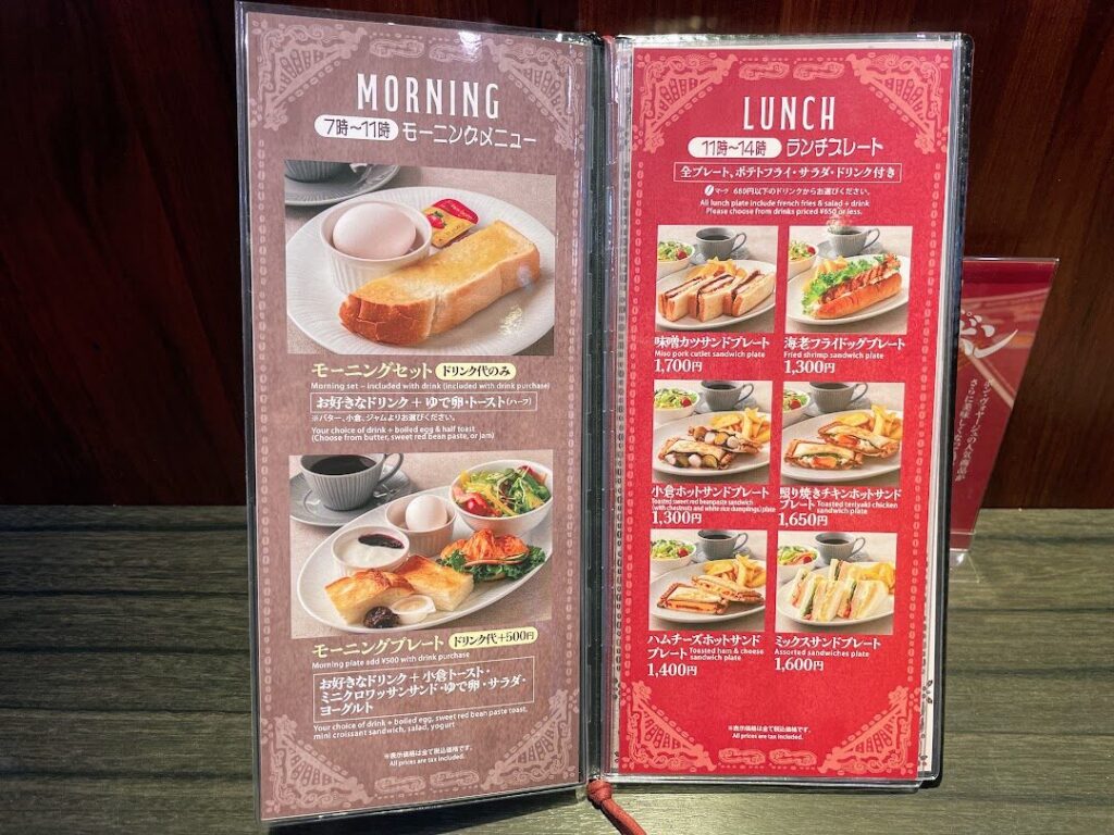 「喫茶ボン・ヴォヤージュ」は朝7時から夜21時30分までのロングランで営業。朝7時から11時まではモーニングメニュー、11時~14時まではランチプレートが登場し、名古屋らしさあふれる喫茶メニューを満喫できます。