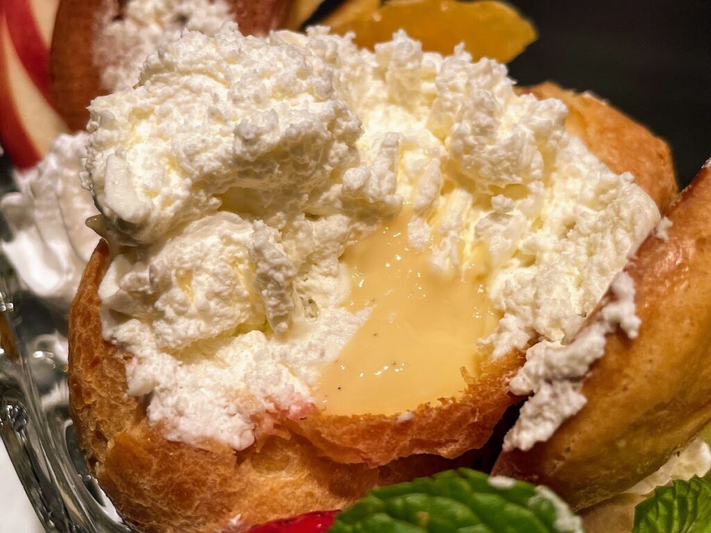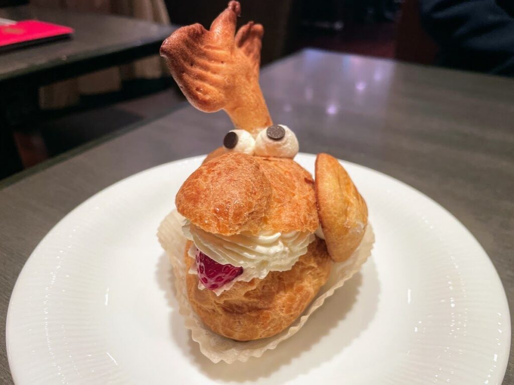 そしてシャチボンの「しっぽ」も大きく変更。2022年に復活した際にはしっぽ部分にもクリームが入っていましたが、今回復活したシャチボンはクリーム無しでシュー皮を焼き上げたものに変更。スマートでスタイリッシュなフォルムになるとともに、しっぽをスプーン代わりにして生クリームやカスタードクリームをディップして楽しめるようになりました。