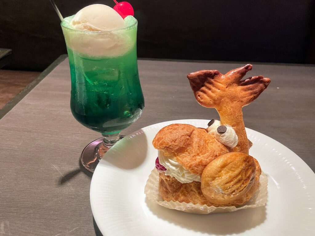シュワシュワ弾ける炭酸と濃い目のシロップ、そしてバニラアイスのクリーミーな味わいがたまらないクリームソーダ。色を選んで注文できるので推し活したい方にもピッタリです。アイスクリームなしのソーダ水(650円)も提供され、ソーダ水はランチプレートにセットすることも可能です。