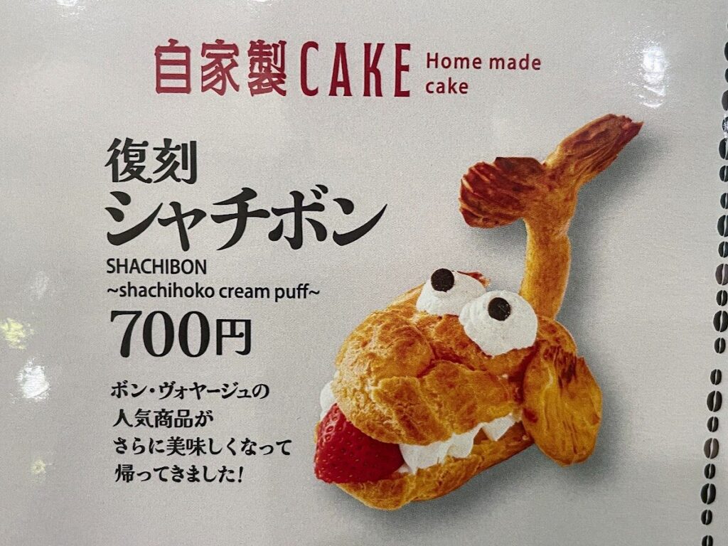 しかし、根強いファンの声に応える形で、2022年6月にJR名古屋駅構内にあるベーカリー「カフェデンマルク」にてシャチボンが待望の復活!その後、2024年7月に「自分を見つめ直すために大きな旅立ちを決意しました」という宣言とともに再休養に入りましたが、今回の「喫茶ボン・ヴォヤージュ」オープンに合わせ、看板スイーツとして満を持しての復活となりました。