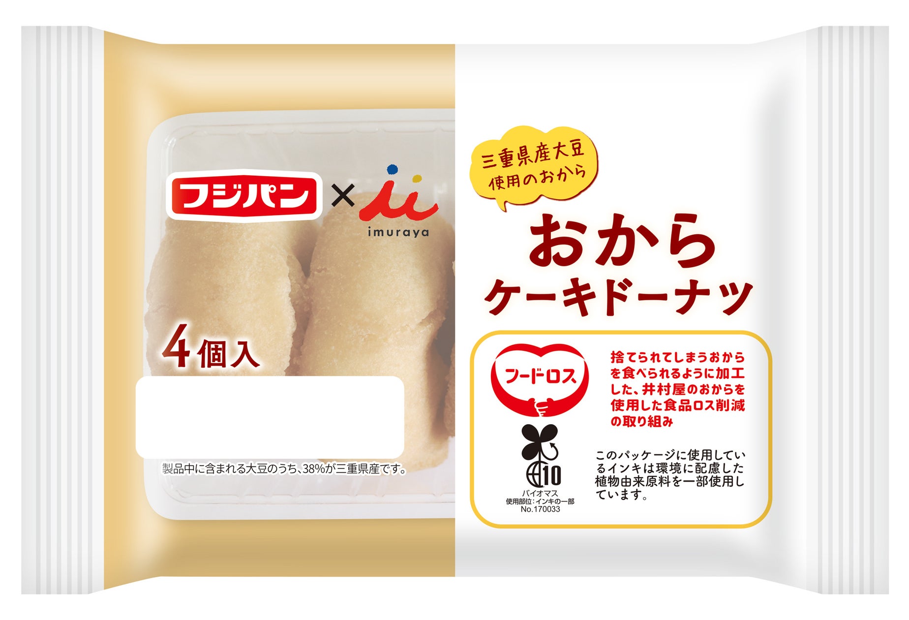 フジパンと井村屋のコラボにより期間限定発売となるのは「おからケーキドーナツ」。井村屋では豆腐の製造過程で発生する『生おから』を副産物として活用することに積極的に取り組んでおり、この取組みに賛同したフジパンが、食品ロス削減という両社の共通課題から開発・商品化しました。