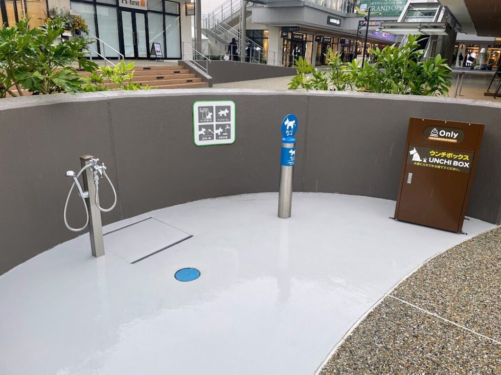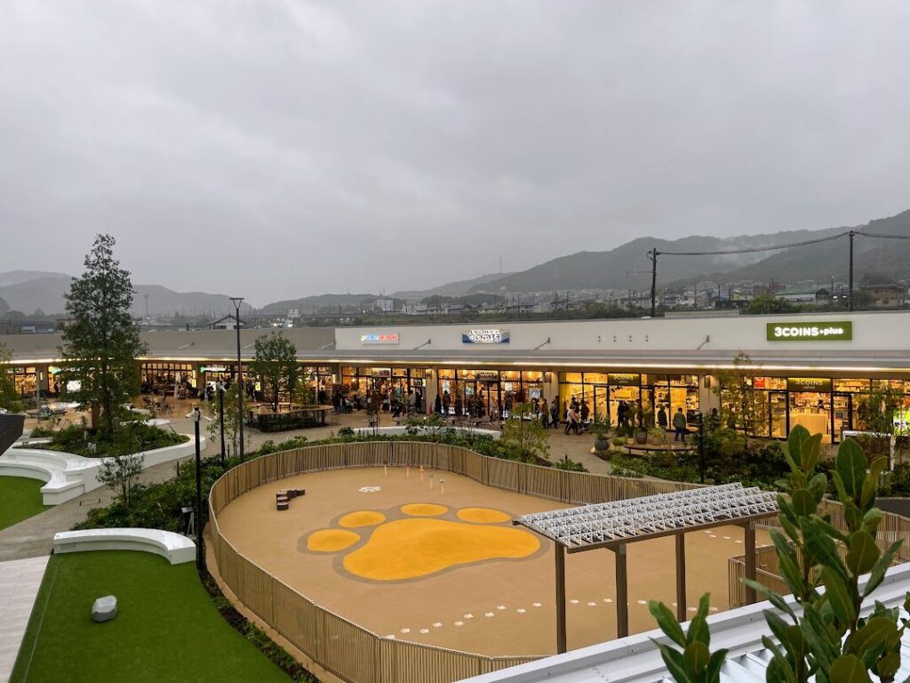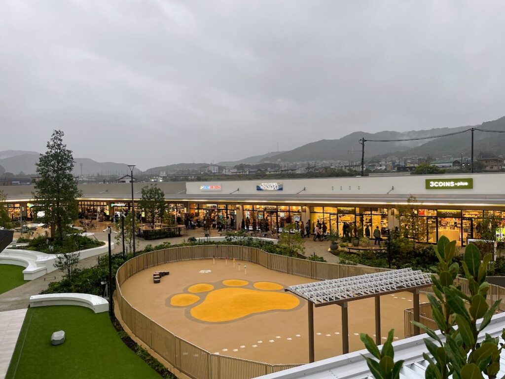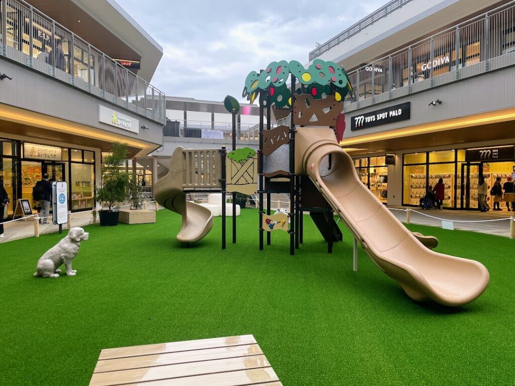 また、敷地西側にあるアウトレットゾーンにも子どもが楽しめる遊び場が設置されており、お買い物の合間などに遊ばせることが可能。ペットを連れての入場もOKで、広々としたドッグランはもちろん、ペットとのお散歩の際に助かる設備も充実しています。