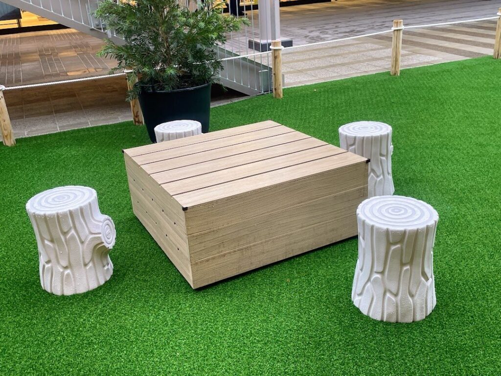 もちろんここにもベンチやテーブルが設置されているので、ゆっくり身体を休めながら遊ぶ子どもたちを見守ることも可能です。