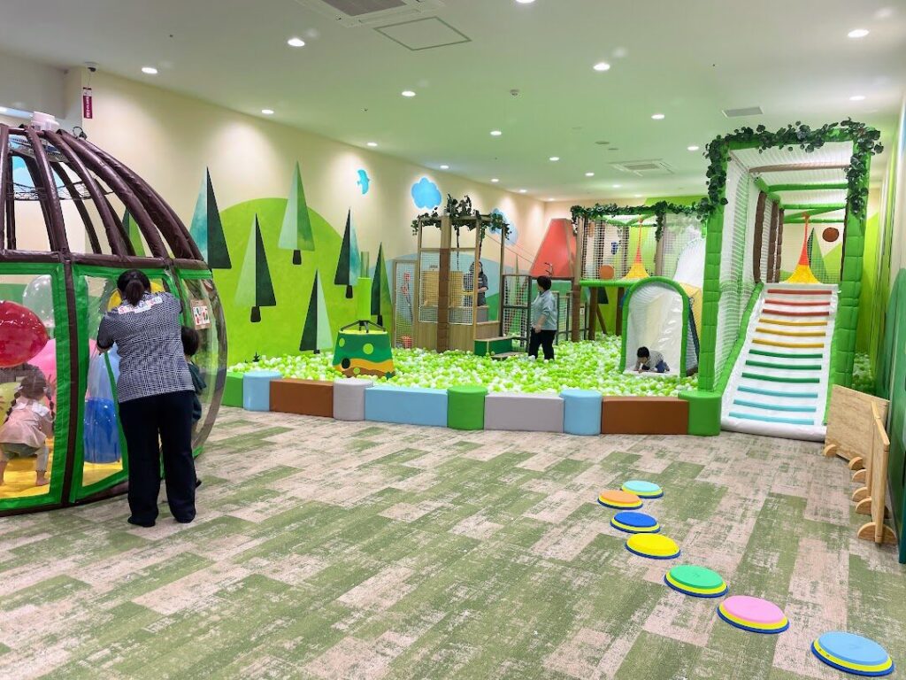 奥にはボールプールや遊具施設がたくさん設置されており、子どもたちが思いっきりはしゃげるようになっています。