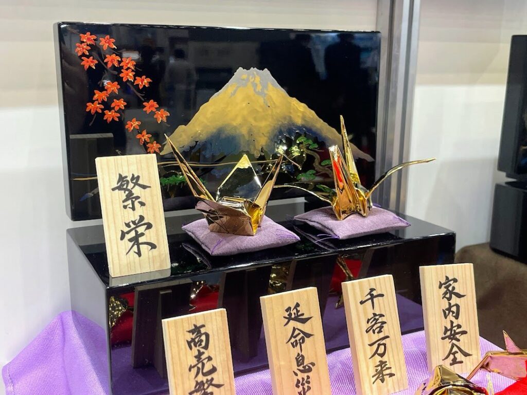 美しく輝く「幸せを呼ぶ金の折り鶴」(有限会社サンルミナス/名古屋商工会議所 ものづくり研究会)【C-15】