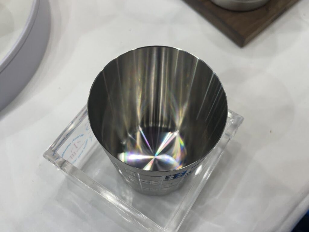 続いて注目したのが、美しい文様が施されたステンレスタンブラー。名古屋で機械部品加工を手がける株式会社鈴木鉄工所が、長年培った切削加工の技術を生かし、ガラス細工の”切子”のようにステンレスを加工して作り出した新商品です。