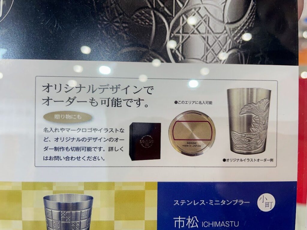 ステンレスタンブラーはオーダーメイドでのオリジナルデザインにも対応しているとのこと。名古屋らしい金シャチデザインのタンブラーを作ってもらうことも可能です。