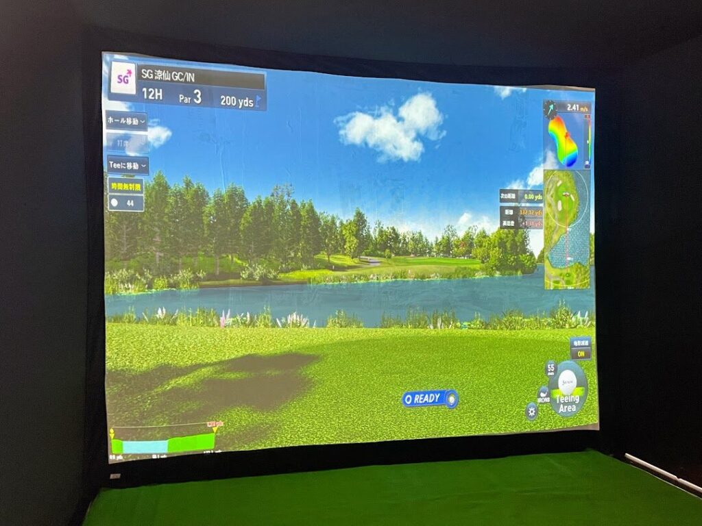 最新のゴルフシミュレーターはコースも精密に再現されており、本当のコースにたっているような雰囲気で違和感なくボールを打つことが可能。筆者も実際に5球体験させていただきましたが、自分で打った感触とシミュレーションの結果がピッタリ一致しており、最新鋭のシミュレーターのすごさを実感しました。