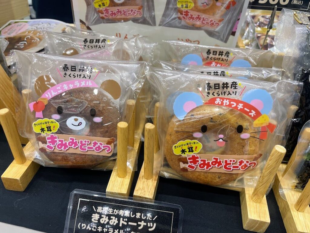 会場では、生きくらげや乾燥きくらげの他、きくらげを使ったスイーツも発売。春日井高校の生徒さんとのコラボレーションから生まれた「きみみどーなつ」も注目を集めていました。