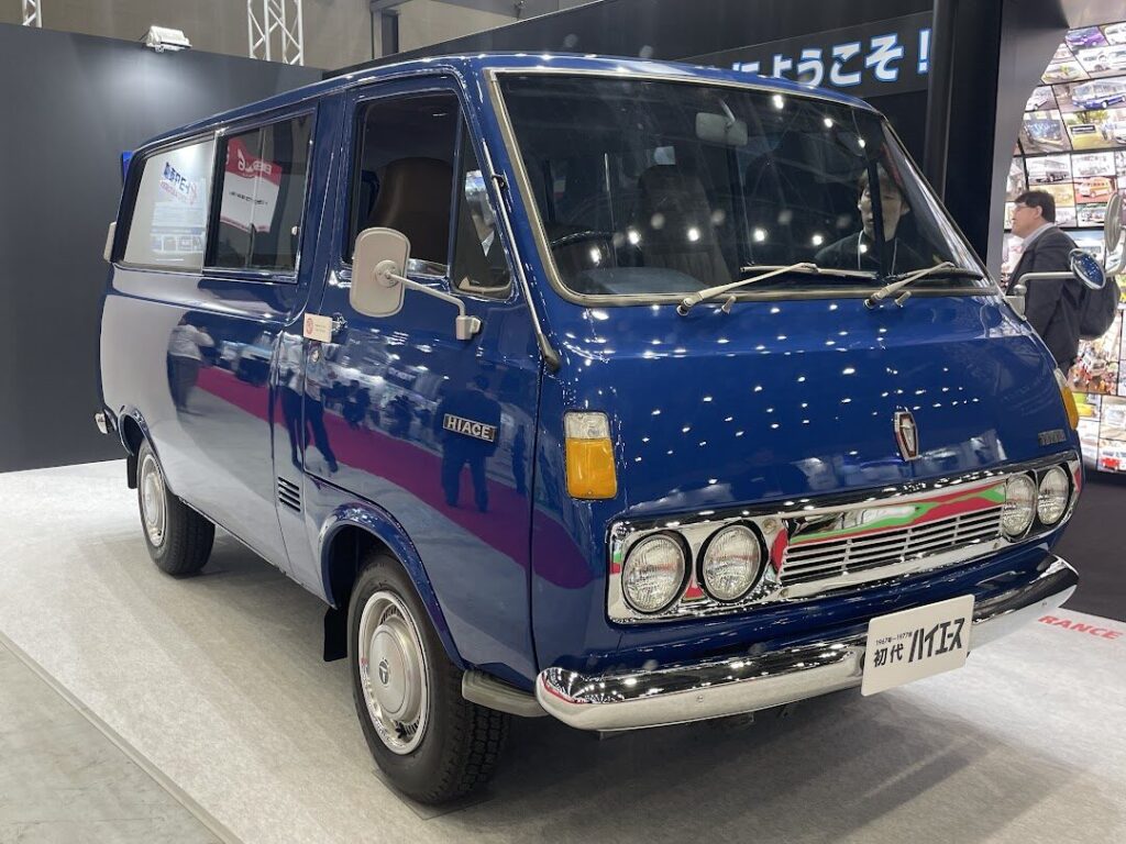 大企業のブースには、ファン垂涎の激レア品も多数展示。トヨタ車体のブースには初代ハイエースが登場。昔懐かしいフォルムの激レア車両に、多くの人たちが足を止めていました。