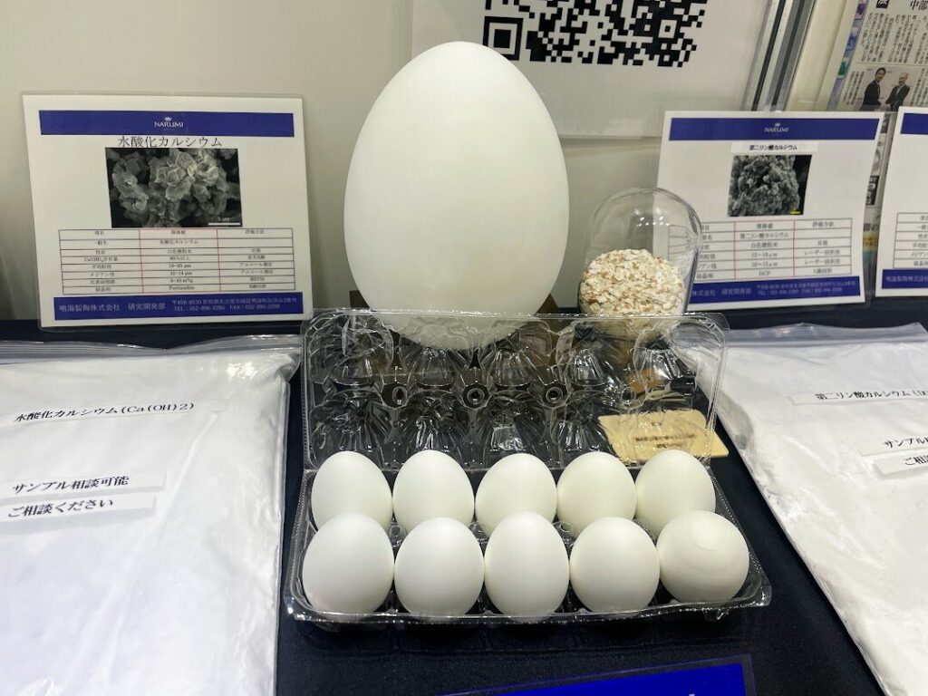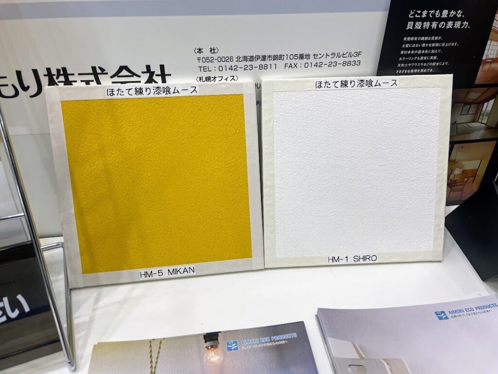 メッセナゴヤには、東海エリアだけではなく全国各地から企業が集結。北海道ゾーンでは、北海道ならではのホタテの殻を資源にした「ホタテ漆喰」を販売するあいもり株式会社も出展していました。