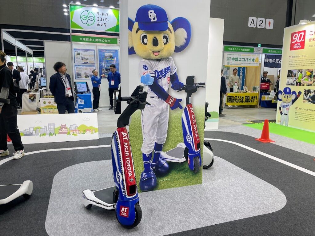 愛知トヨタブースには、中日ドラゴンズのマスコット「ドアラ」がバンテリンドームナゴヤでの試合のさいに実際に乗り回している電動モビリティが登場!