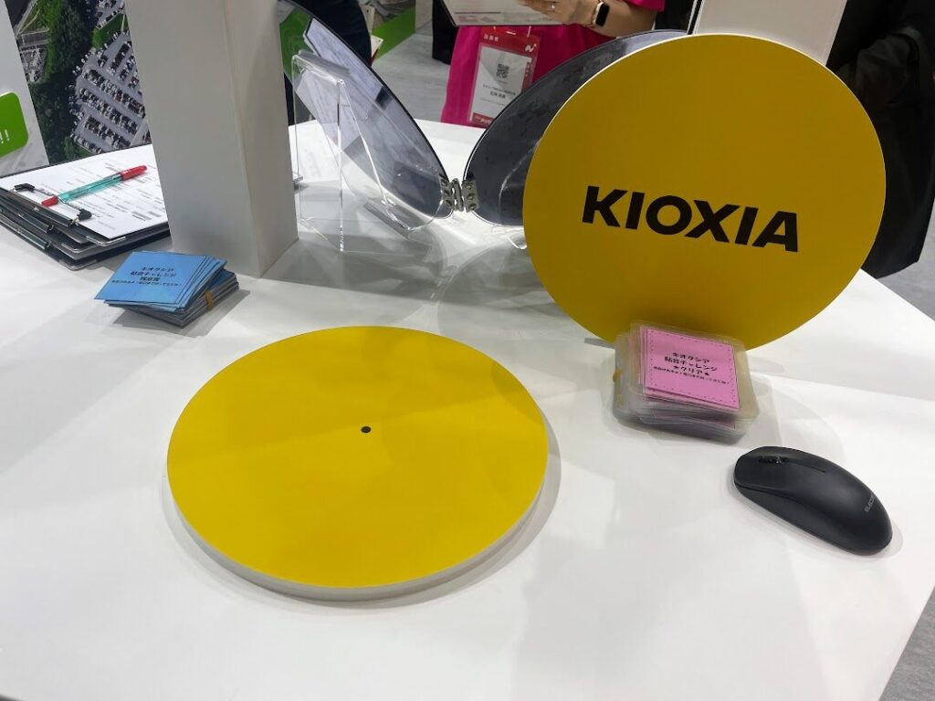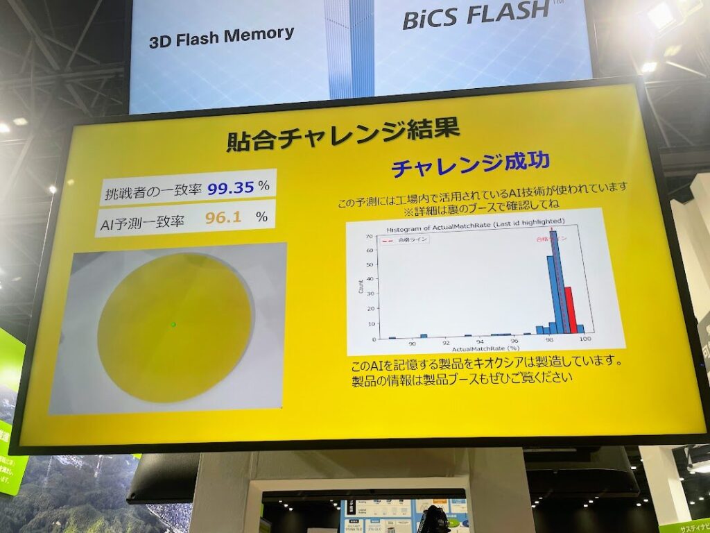 メッセナゴヤには、来場者に楽しんでもらえるような様々な参加型企画を開催したり、プレゼントを配ったりする企業もたくさんあります。半導体製造を行うキクオシア株式会社四日市工場もその1つ。このブースでは半導体製造工程の一つである「貼合チャレンジ」が開催されており、多くの来場者がチャレンジに挑んでいました。