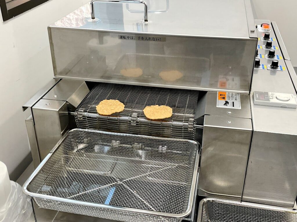 「焼きたて〈ゆかり〉」が食べられるのは、ららぽーと名古屋みなとアクスル内にある工房併設店舗「坂角総本舖 BANKAKU FACTORY SHOP」1店舗のみ。店舗奥の工房に設置された専用の装置で最後の仕上げとなる”二度焼き”が行われた「焼きたて〈ゆかり〉」を、1枚から店頭で購入できます。