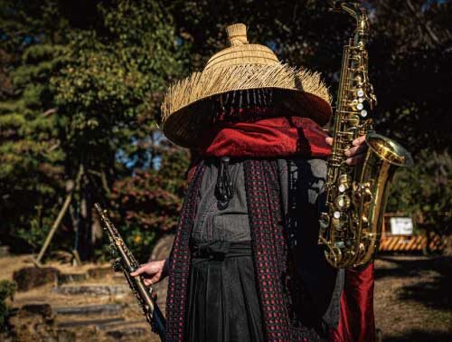 名古屋を中心に活動するストリートサックスプレイヤー「サックス侍」。編み笠をかぶった侍の姿で、侍姿でサックスを奏でる唯一無二の存在として、いまや“名古屋の人間観光地”として確立。SNS総フォロワー数は24万人を超え、動画総再生数も1,500万回以上を記録しています。
