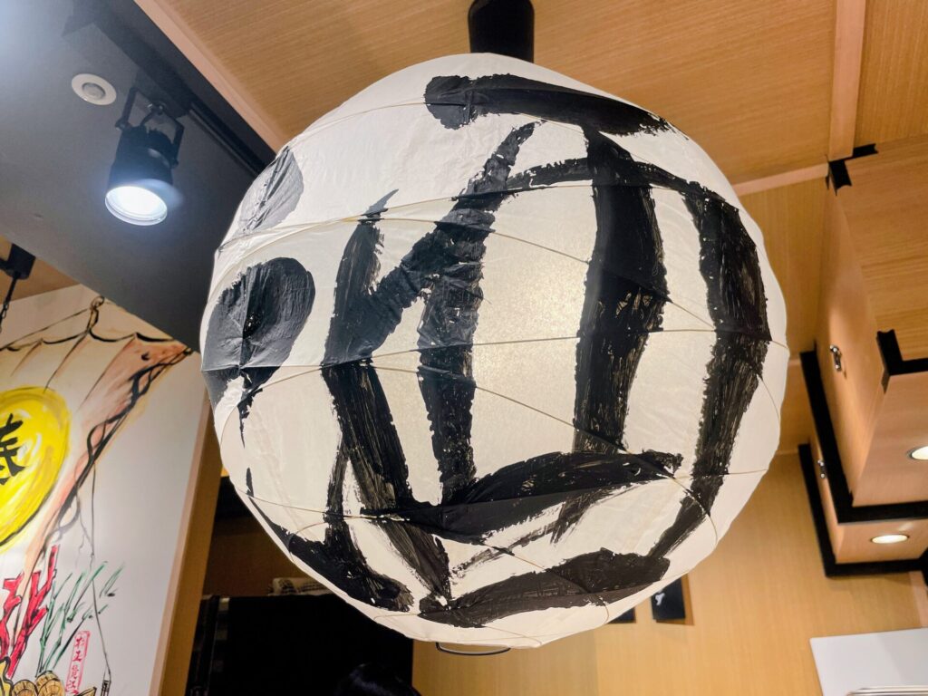 カウンターの上には大きな提灯を設置。「酒」「鮨」などの文字が大きく書かれ、楽しさの演出に一役買っています。