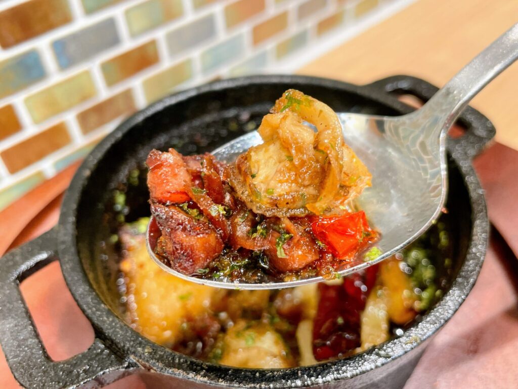 開発に苦労した甲斐もあり、「杉玉のアヒージョ」は海鮮ならではの旨味がじわっとあふれだす”寿司居酒屋”らしさ満点の味わいに。ホロッとしたベビー帆立や、噛めば噛むほどおいしさが溢れ出す赤貝のヒモもおいしさ満点です。辛さは穏やかで食べやすく、アンチョビの旨味やアオサの香りが海鮮ならではの味わいを演出。これらのおいしいところを全部吸い込んだジャガイモのおいしさは格別です。