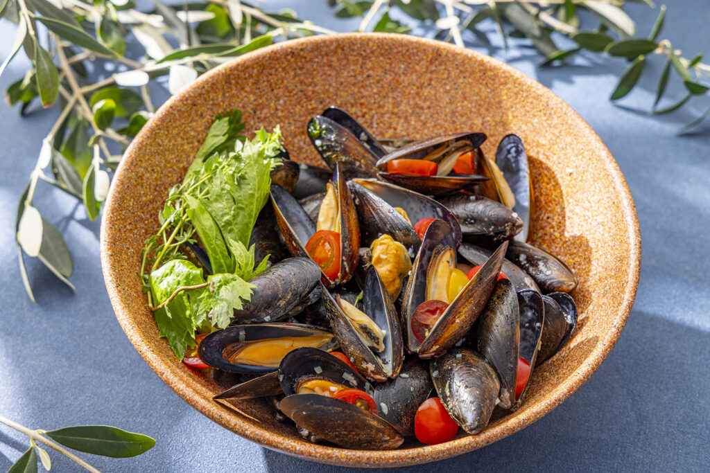 ムール貝をニンニクとハーブ、白ワインで香り高く蒸しあげた「ムールマリニエール」はフランスの定番料理。ガーリックの風味と魚介の旨みが溶け合い、豊かな味わいが広がります。海の恵みを堪能する一皿です。