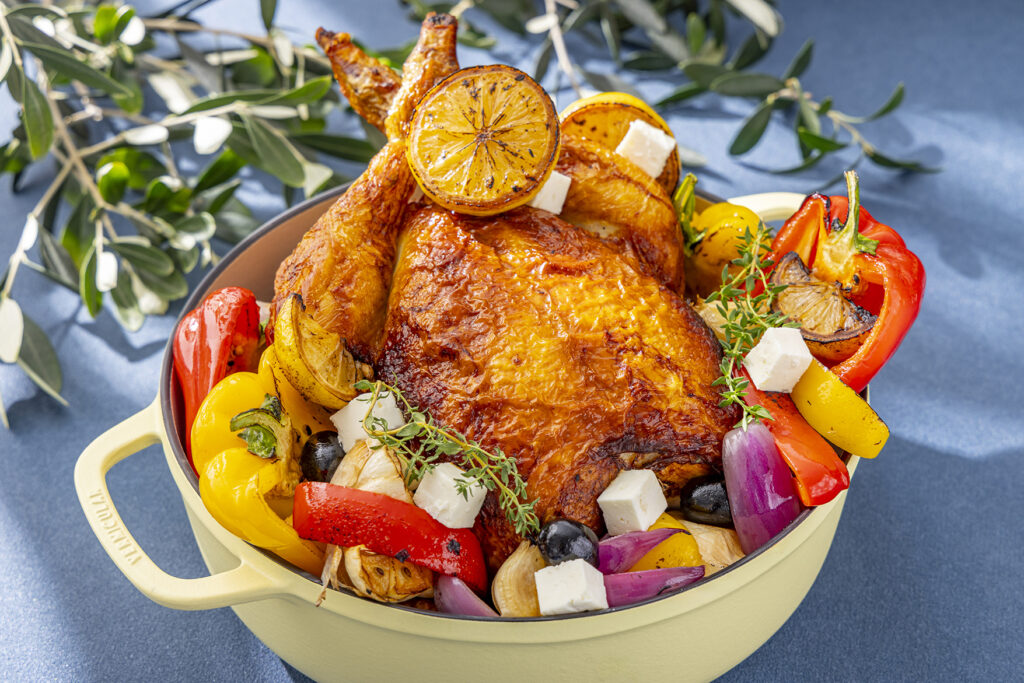丸ごとの鶏をレモンとガーリックでじっくりマリネした後、香ばしく焼き上げた一品。フェタチーズやオリーブを添えていたたけば、爽やかなギリシャの風を感じることでしょう。