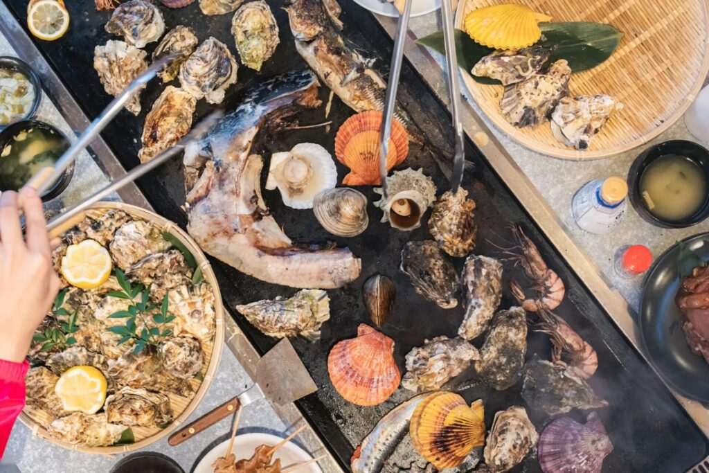牡蠣/干物(日替わり)/ホタテ/ブラックタイガー/サザエ/白ハマグリ