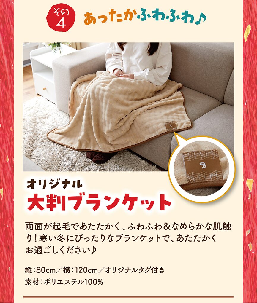 名古屋発のステーキハウス「ブロンコビリー」も超お得な福袋を発売。5000円分の特別クーポンにオリジナルベーコンドレッシング、オリジナルお買い物保冷バッグ、あったかふわふわオリジナル大判ブランケット、さらにオリジナルスープジャーが付いて5000円と、オリジナルアイテムが実質無料になってしまう破格の内容となっています。