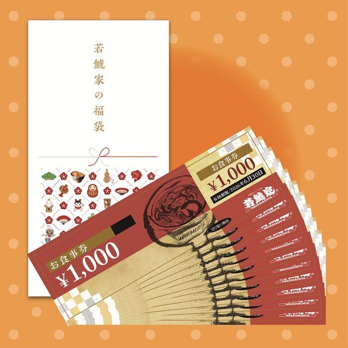 2026年の注目は、若鯱家ならではのおいしさを家庭でも楽しめる人気の商品とお食事券2000円分がセットになった3500円福袋。オリジナルトートバッグとカレーうどんアクリルキーホルダーもついて来るので、普段使いすれば若鯱家愛をさりげなくアピールできます。また、お店ので食事をお得に楽しめる「お食事券福袋」も登場します。