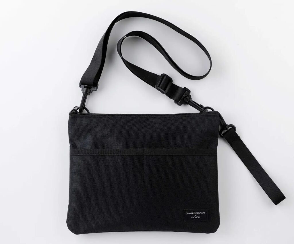 オリジナルサコッシュは約25cm×約19.5cmとしっかりサイズの容量。取り外し可能な肩紐・持ち手、出し入れしやすい仕切られた前ポケットがうれしいポイントです。スタイリッシュなデザインで、ハンドバックや肩掛けバックとして3通りの形で使えるため、普段使いにもピッタリです。同デザインのオリジナルコイン&カードケースもついてくるので、つなげて使うのもOKです。