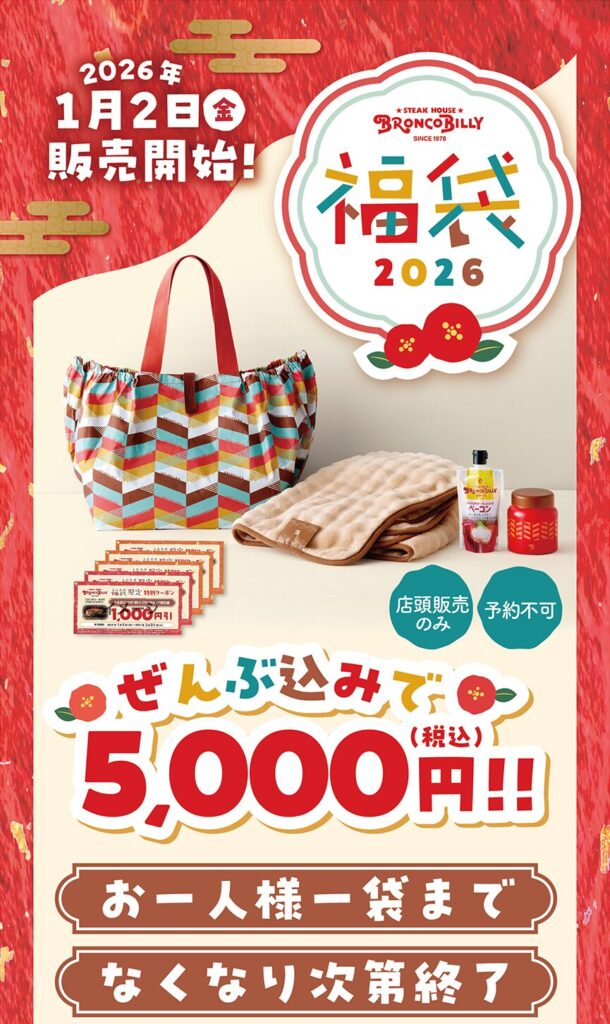 ブロンコビリー/年の初めの運試しもできる超お得な福袋が登場!