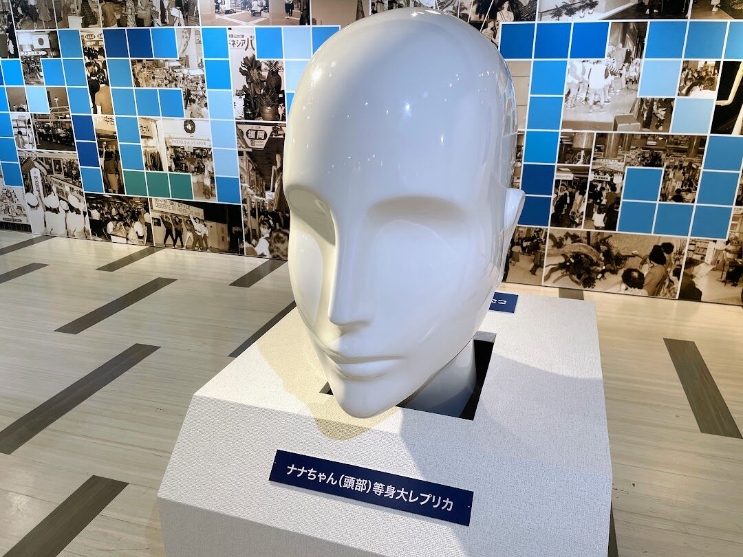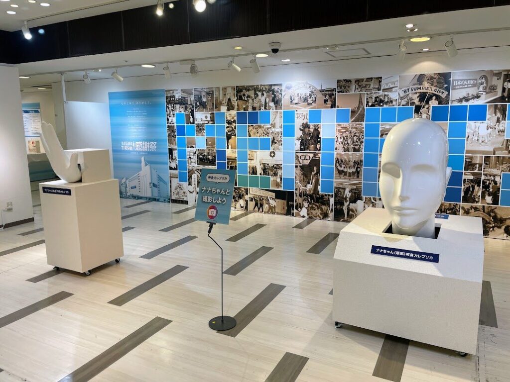 会場で最も目を引くのが、名古屋駅のシンボルとして長年親しまれてきた「ナナちゃん」の実物大レプリカ。頭部と右手がそれぞれ設置され、一緒に写真を撮影できるようになっています。