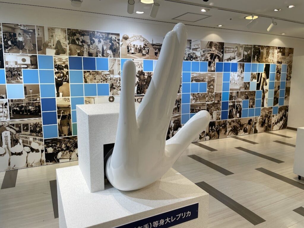 隣にはナナちゃんの「右手」のレプリカも設置。手を近づけてハイタッチしている風に撮影することも可能です(撮影するときにはナナちゃんの右手に触れないようにご注意ください。)