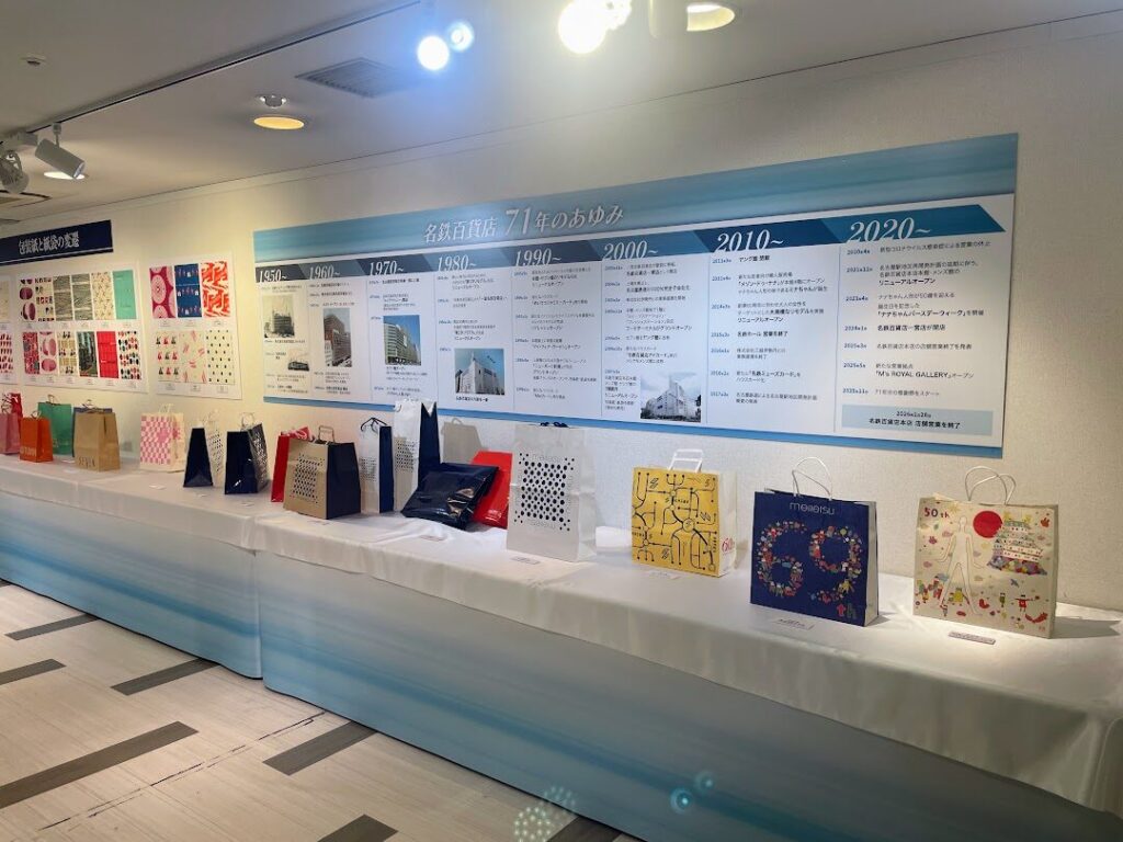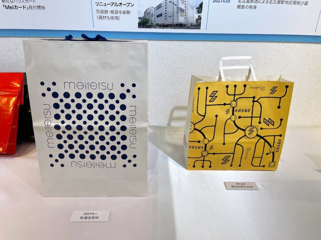 ちなみに現行のデザインは2007年から使用されているもの。初期の頃のデザインと並べて比較できるのも名鉄百貨店ならではです。