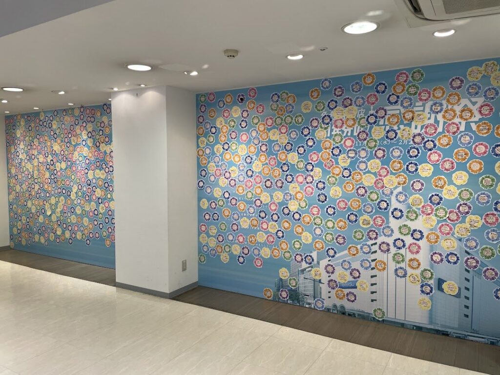 会場通路には、名鉄百貨店への感謝を伝えるメッセージボードも設置。花の形のカードとペンが備え付けられており、これまでの感謝の気持ちをメッセージに込めて贈ることができます。既にたくさんのメッセージが張られ、一面花盛りです。