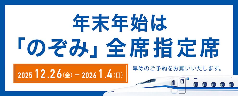 東海道・山陽新幹線は2025年12月26日(金)~2026年1月4日(日)の年末年始期間において、臨時列車を含め一日あたり442本の新幹線を運転が行われます。年末年始期間中は東海道・山陽新幹線「のぞみ」について全席指定席での運行となり、繁忙期・最繁忙期扱いとなり通常よりも指定席特急料金が割増となります。なお、年末年始期間の前後は通常よりも割引きとなる閑散期料金が適用される場合があります。