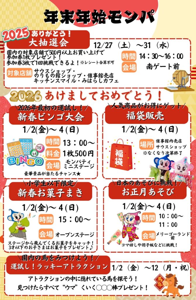 12月26日からはリトルワールド初のカレーをテーマにしたグルメイベント「世界カレー博~スパイスで巡る旅~」がスタート。12月27日~31日は歳末イベント、1月2日からは「謹賀新年福袋」の発売や引き馬体験などが楽しめる新春イベントが開催されます。