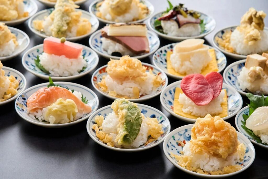 「蕎麦酒 そばえもん」では、そばまえのお供となるおいしいおつまみがズラリ。中でも魚の刺身や天ぷら・漬物などが乗った「小皿寿司」はメニューのバラエティも豊富で、色んな味わいを楽しめます。
