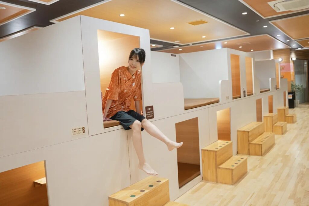 オーバーナイトの時間帯は3階温活リビングゾーンの利用が可能。また、フリーコースまたは夜トクお風呂+岩盤浴にて入館すると、5階温活ヒーリングゾーンの利用も可能となります。ヒーリングゾーンは深夜2時~朝6時まで消灯となるので、ぐっすり眠りたい人にもおすすめです。また、大浴場は朝6時から利用OK。疲れを癒やしてからの朝風呂は格別です。