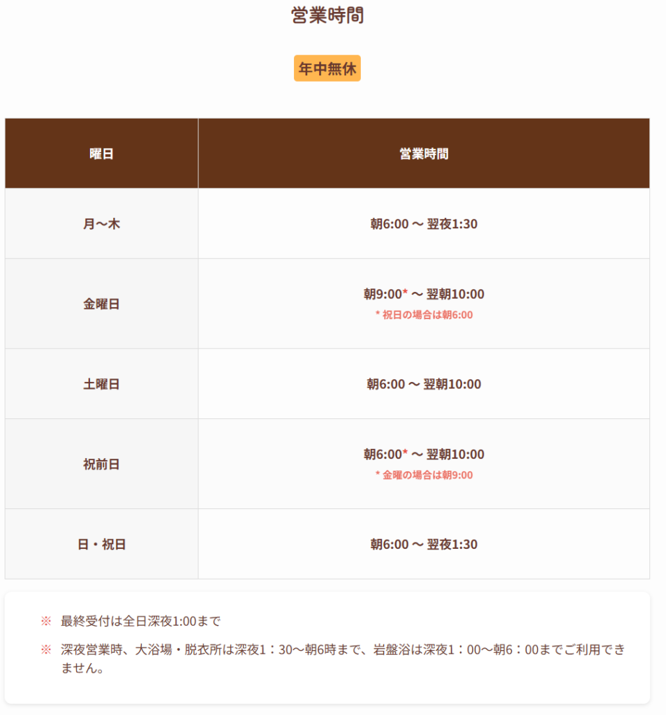 ※12月31日の深夜1:30~2:00の30分間はメンテナンスのため入浴できません。