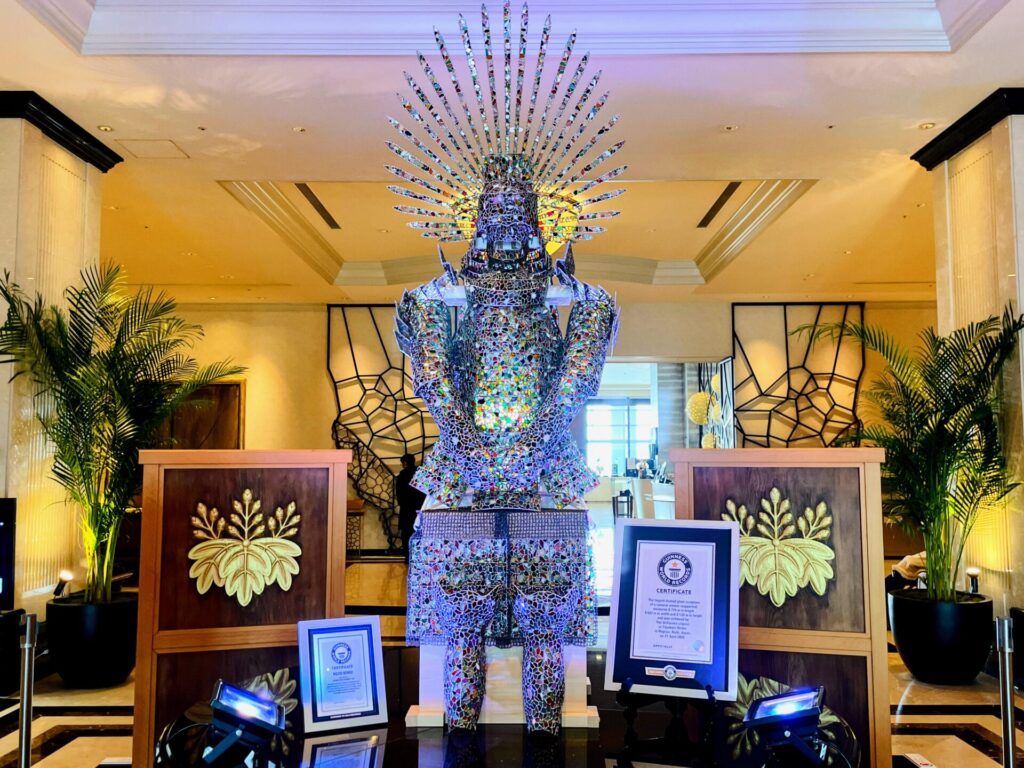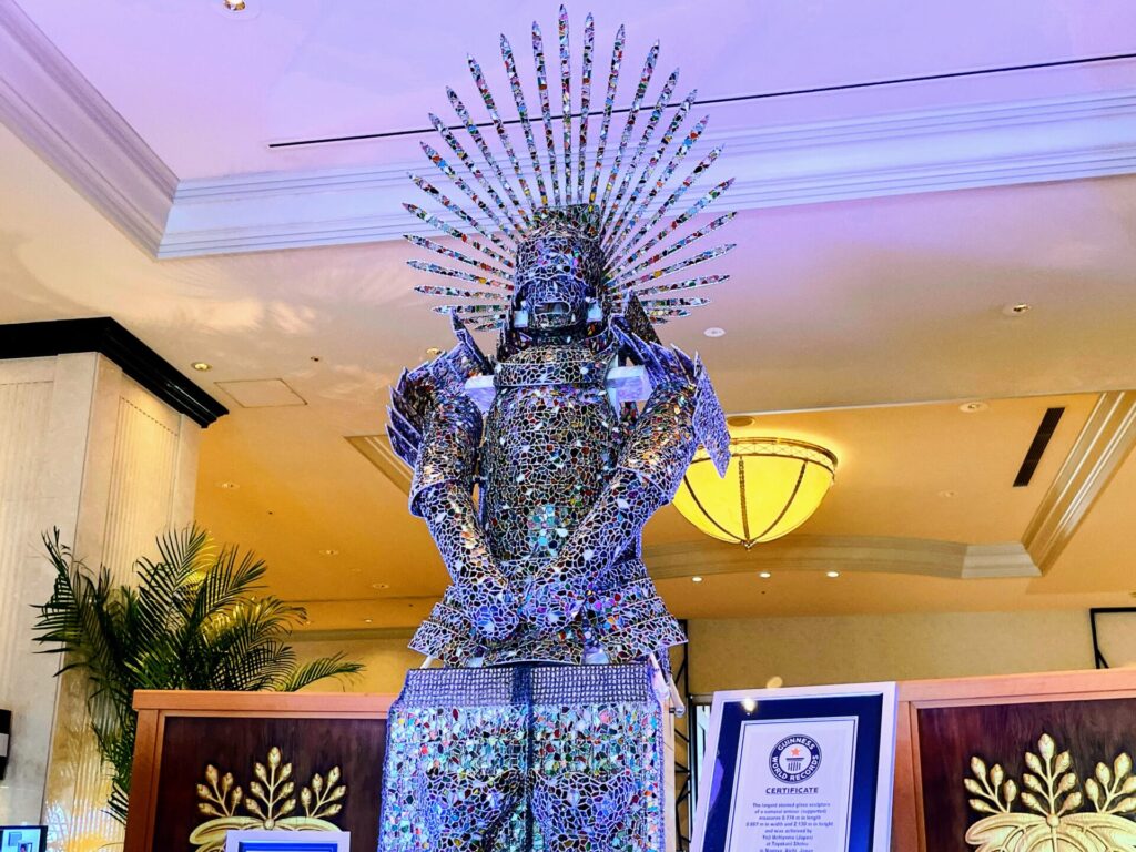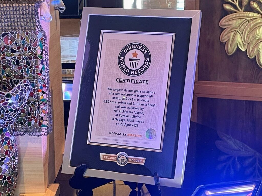 72のパーツからなる精巧なステンドグラス製の甲冑は、高さ213㎝、幅77.4㎝、奥行き60.7㎝、重さ約80㎏と圧倒的な大迫力。2025年4月27日には「世界最大のステンドグラス製甲冑」としてギネス世界記録認定されました。
