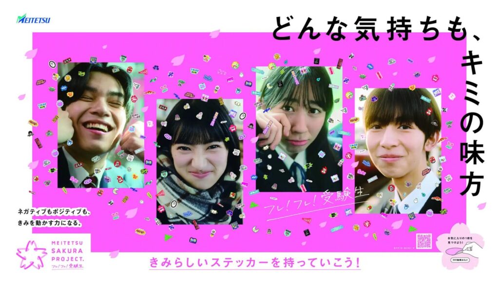 「MEITETSU SAKURA PROJECT.」では毎年受験生と受験生を支える人を応援するメッセージ広告を展開。今シーズンは「受験期に生まれるさまざまな感情を、丸ごと肯定する」というコンセプトで、受験に臨む過程で数多く生まれるポジティブな感情やネガティブな感情をステッカー化して表現。受験生自身が、どんな感情も一歩を踏み出す原動力になる大切なものだとして肯定し、前を向いて進めるようなメッセージをポスターなどで展開されます。