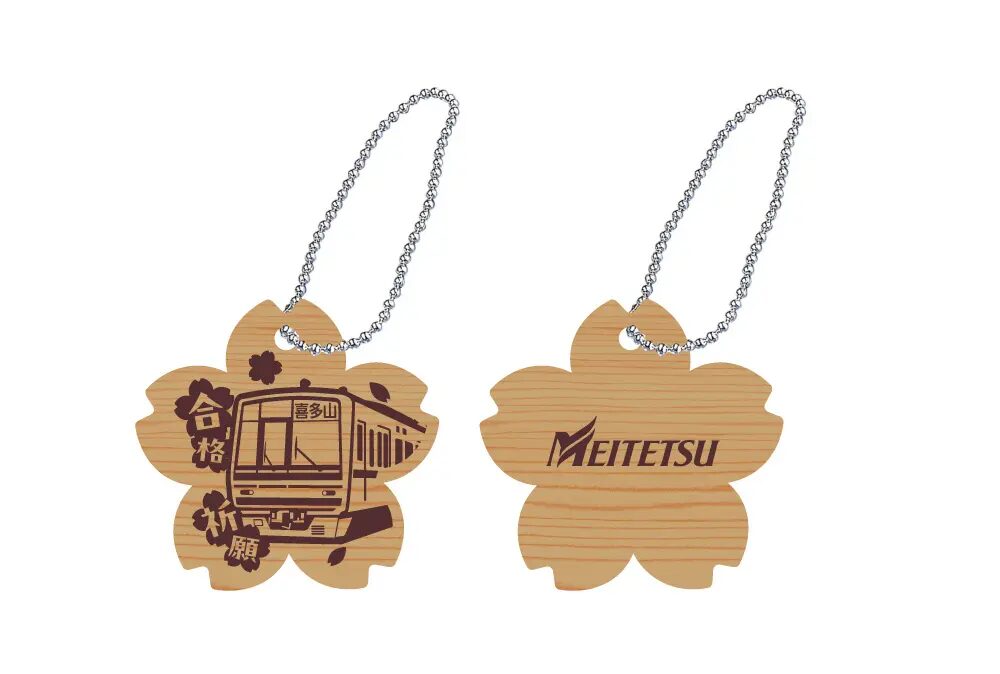 今シーズンは、名鉄沿線にある山田天満宮(名古屋市北区)・北野天神社(江南市)とのコラボによる、受験生の合格を祈念した「サクラサク合格キーホルダー」も登場。キーホルダーには本物の「桜の木」を使われており、表面には名鉄電車、裏面には名鉄のロゴがあしらわれた桜型と絵馬型キーホルダーの2種類が発売されます。