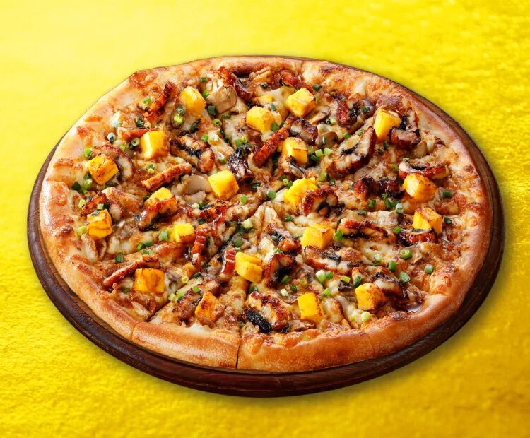 豊臣秀吉に着想を得た「秀吉のうなぎ黄金ピザ」は、金色に輝く贅沢の極みの”太閤の饗宴”ピザ。香ばしいうなぎととろけるチーズの黄金、そして特製うなぎのたれの競演が深みある旨さを導き出します。