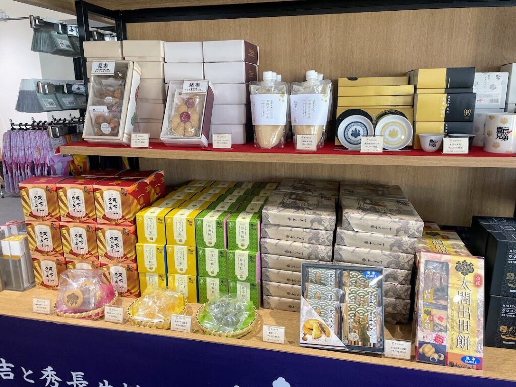 「豊臣ミュージアム」のもう一つの施設がミュージアムショップ。名古屋の定番お土産や大河ドラマ「豊臣兄弟!」にちなんだグッズなどがズラリと勢揃いする、見ているだけでもワクワクが一杯のショップとなっています。