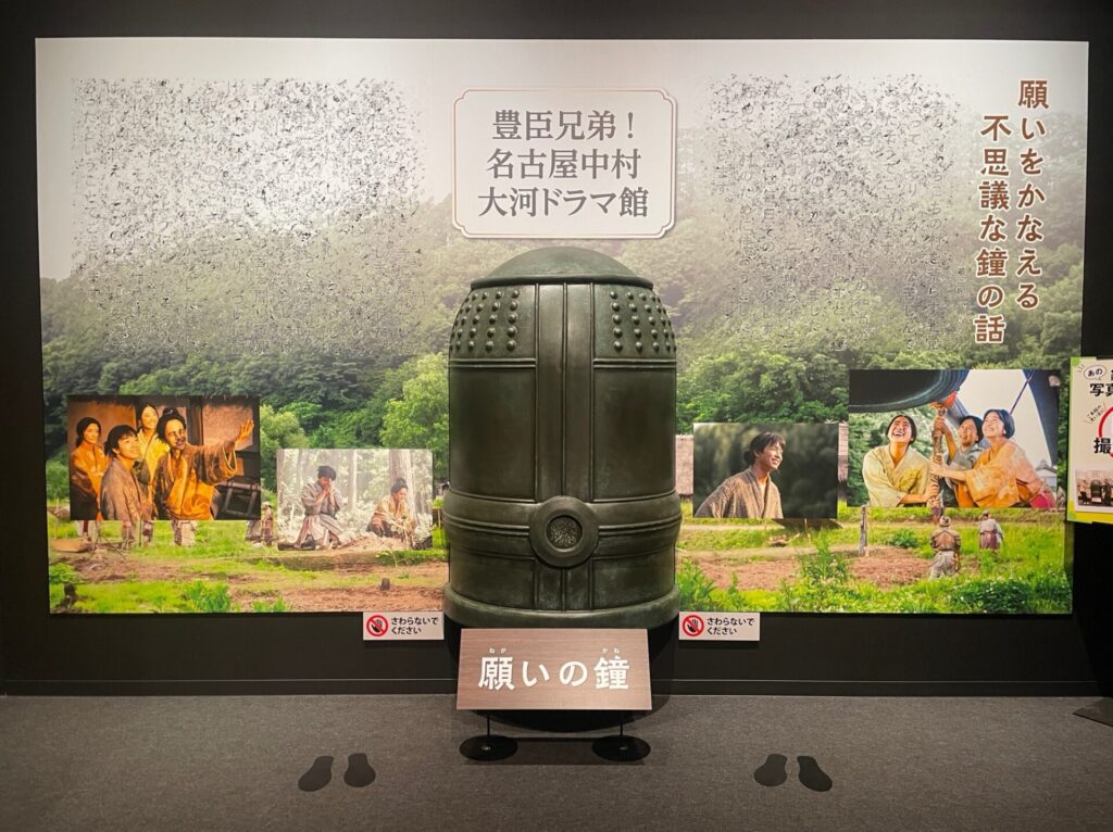 2つ目のフォトスポットは「願いの鐘」。第2回の放送では、兄弟の門出の無事を祈る家族たちが「願いの鐘」を何度も撞くシーンが印象的でした。藤吉郎・小一郎兄弟の故郷である尾張国中村を象徴するキーアイテムとして、フォトスポットに登場です。