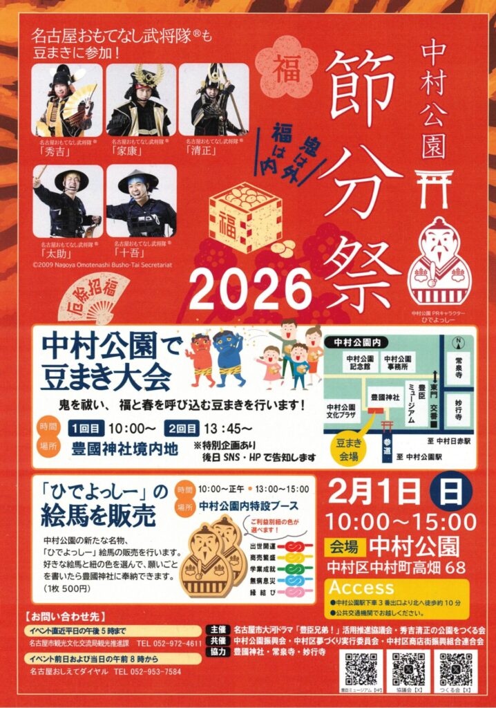 この記事は、中村公園節分祭パンフレットの情報と豊臣ミュージアムからのお知らせに基づいて作成しました。