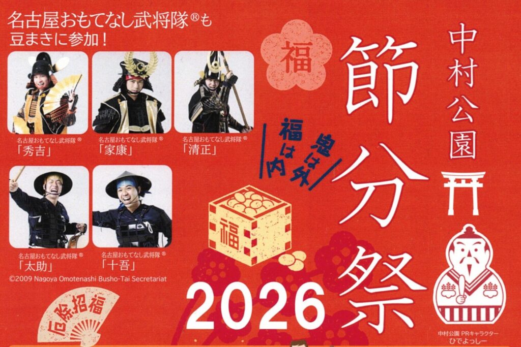 また、名古屋おもてなし武将隊のメンバーも例年と同様に豆まき大会に参加予定。2026年は「豊臣秀吉」「徳川家康」「加藤清正」「太助」「十吾」の5名が参加すると発表されました。